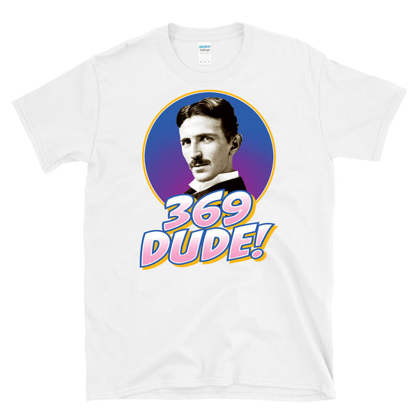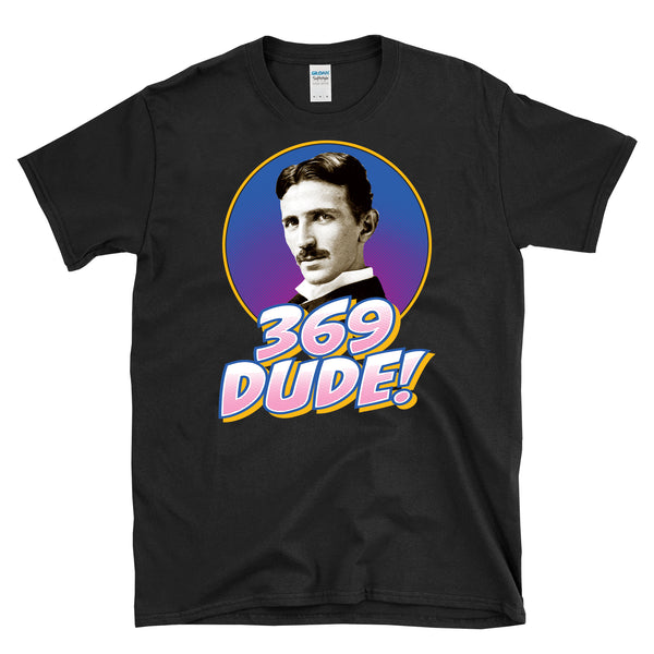 369 DUDE! - Nikola Tesla believed that the numbers three six and nine hold the secrets to all things in the universe. "If you only knew the magnificence of the 3, 6, and 9, then you would have the key to the universe." These numbers representing energy, frequency and vibration can unlock anything in manifesting your dreams. This punny pun inspired tee has a great image of Nikola and an 80s and 90s pop culture vintage retro tee look and vibe.