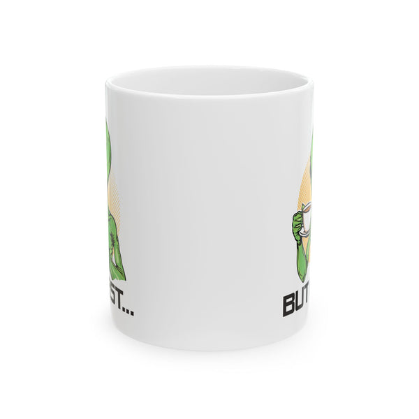 BUT FIRST... Awesome coffee or tea ceramic mug has a green alien from outer space drinking a nice cup of joe before world domination. Great for fans of science fiction movies & alien documentary tv shows. Use this at work, school, or on your desk in your home office and start your day with a laugh when you drink your morning java or green tea. A fun birthday present for a man or woman who loves alien documentaries, the paranormal, UFO & UAP sighting stories and all things coffee!