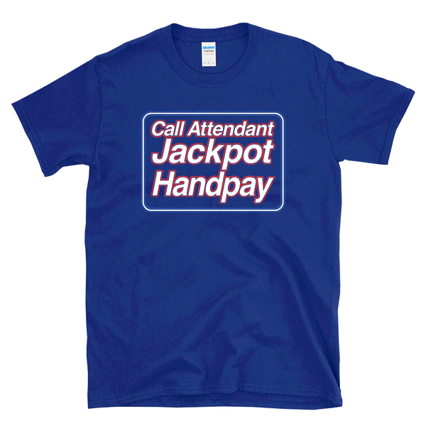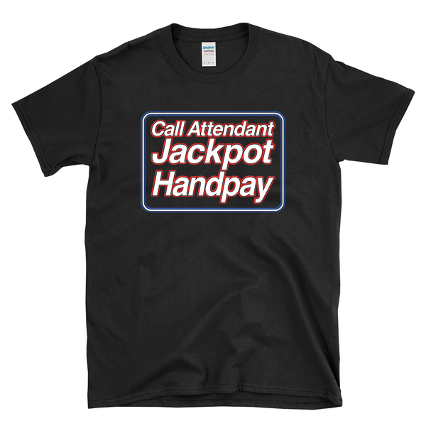 CALL ATTENDANT JACKPOT HANDPAY - The best thing you want to see come up on your favorite slot machine when you are betting max and going for a big hand pay jackpot! Wear this to your favorite casino to play your favorite slot machines.. chase the dragon orb bonus, or a huge fireball win and link up with your other casino friends and win a big jackpot and get a hand pay. Great for mom, dad, sister, brother, uncle, aunt and your favorite slot Karen as a birthday gift or holiday present or for your degenerate casino loving self! Printed on a Soft Style 64000 shirt, please check size chart for correct fit. • 100% ring-spun cotton • 4.5 oz. • Pre-shrunk