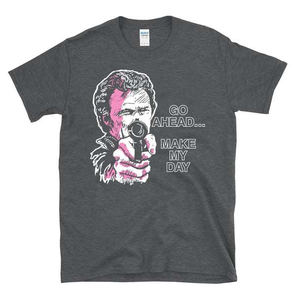 GO AHEAD... MAKE MY DAY - great for a fan of the second amendment and right to bear arms and protect oneself and awesome action heroes. Wear this to a weapons convention, out to target practice, to a party, or to the range or out hunting. Great fathers day gift for a police officer or detective or military marksman. Funny t-shirt for fans of pop culture, funny movie quotes from the 80s and 90s, vintage t-shirts and retro fashion, throwback jokes & action movies and bad ass renegade cops. Printed on a 64000 soft style tee. Check size chart to ensure the right fit. • 100% ring-spun cotton (Dark Heather is 65% polyester, 35% cotton) • 4.5 oz • Pre-shrunk