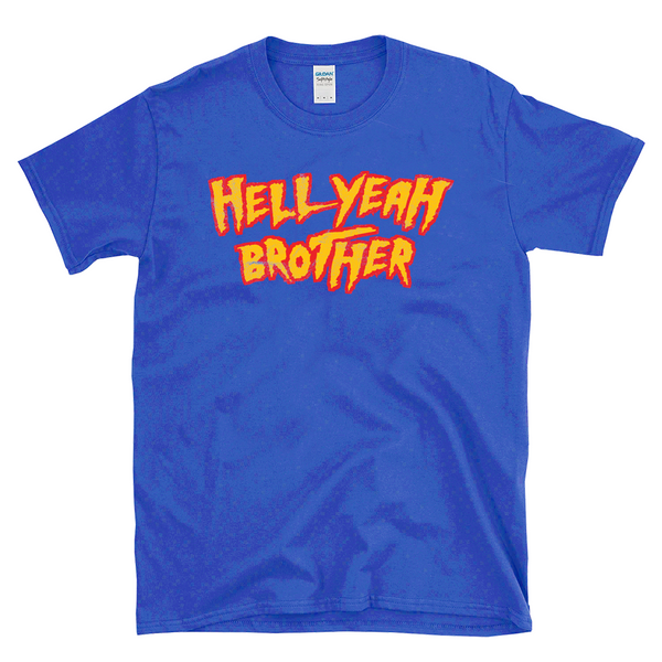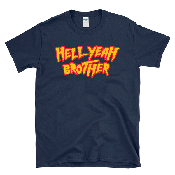 Hell Yeah Brother! - Almost high five and say what's over with this radical t-shirt. Vintage 80s and 90s look Perfect for hiking in Las Vegas in a casino, pool cabana, night or day club party and more to get attention and start conversations. Printed on a Gildan Soft Style 64000 shirt, please check size chart for correct fit. • 100% ring-spun cotton (Heather Navy is 65% polyester, 35% cotton) • 4.5 oz • Pre-shrunk •