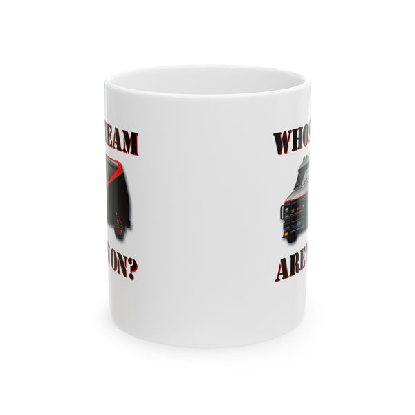 WHOSE TEAM ARE YOU ON? - This punny coffee or tea mug has a black van with a heroic red racing strip that looks like it is driving around a team of cracked commandos out wrongfully accused out to clear their name and save the day one episode at a time in the 1980's. Will the plan come together when you drink your favorite beverage at work or school or home from this mug? You will love it!